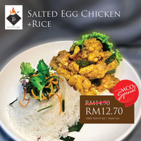 Crisp chicken hot stir fry with salted duck egg yolk, mixed with our home-made sauce, chili, curry leaves served with Rice