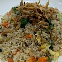 Hot stir fried rice with salted fish, mixed vegetables and chillis. Add-on 'cili potong' or 'sambal belacan' for more kick!